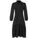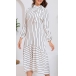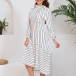 Fashion Vertical Striped Printed Self-tie Crew Neck Long Sleeve Midi Dress