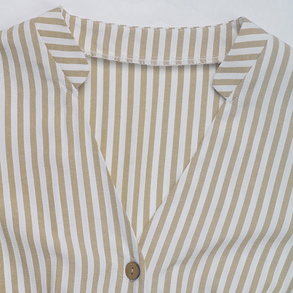 This jumpsuit featuring vertical stripe print, a button-up V-neck, straight-cut legs, and a self-tie waist. The vertical stripes create a slimming and elongating effect, while the straight-cut legs offer a sleek and tailored silhouette, perfect for a polished and chic look. Hope you like it.