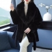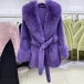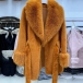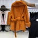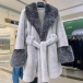 Fashion Warm Artificial Fur Spliced Lapel Long Sleeve Self-tie Jacket
