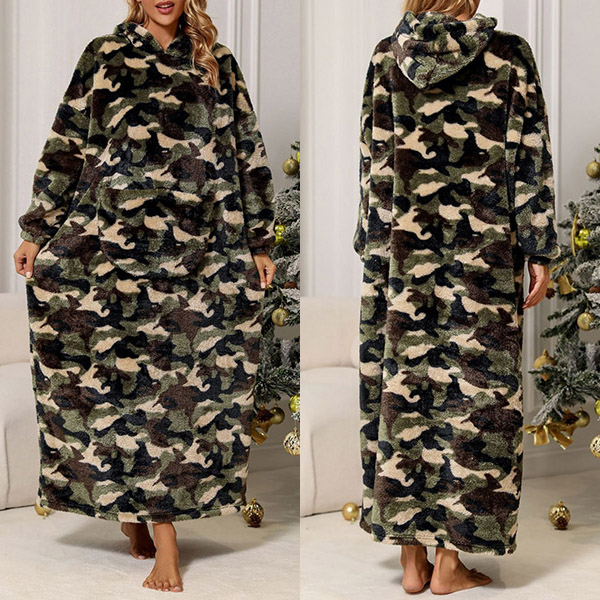 Fashion Warm Camouflage Printed Hooded Longline Loungewear Plush Hooded Dress