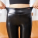 Fashion Warm Plush Lined Artificial Leather PU Stirrup Pants