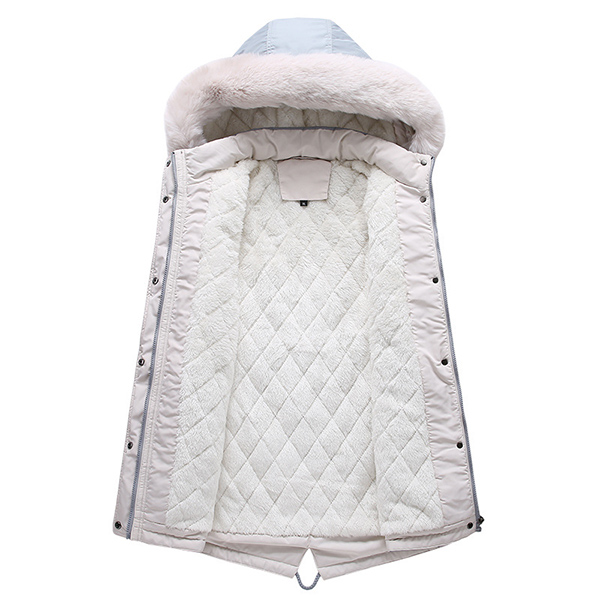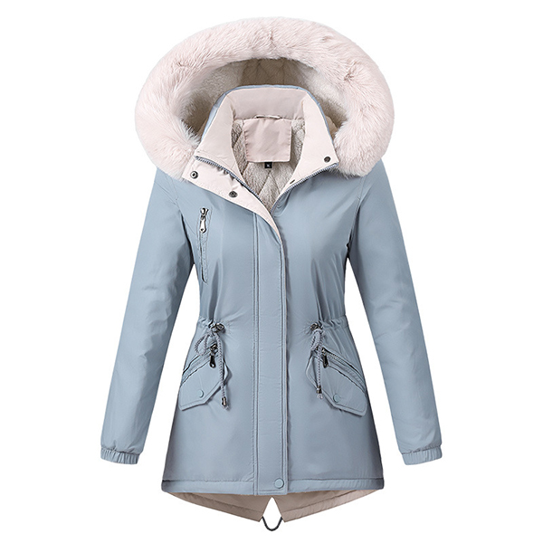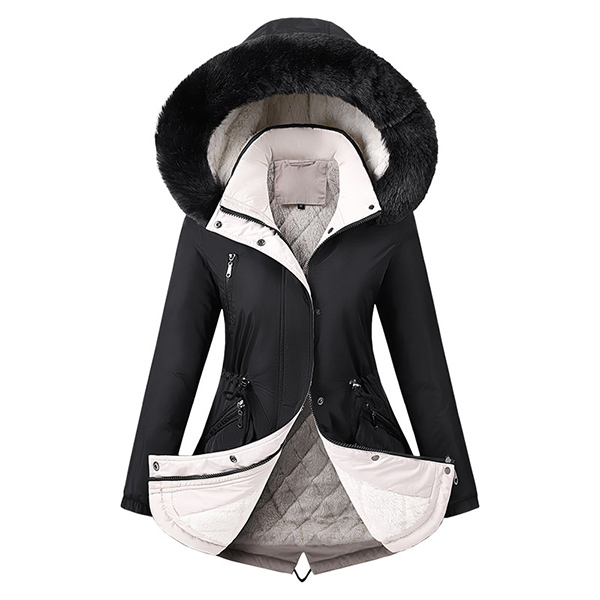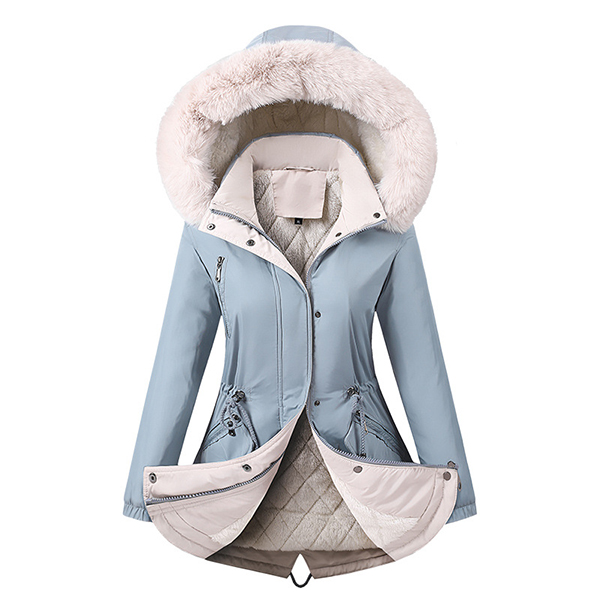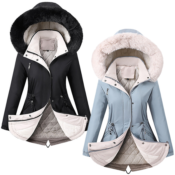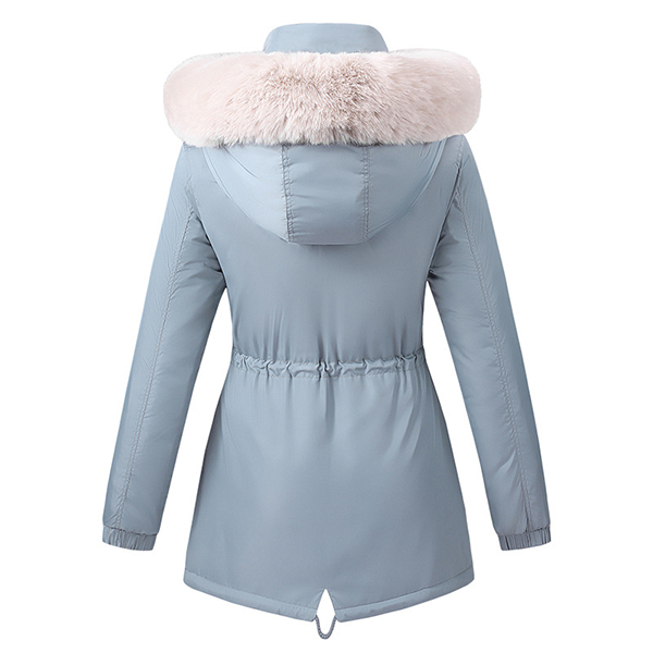 Fashion Warm Plush Lined Drawstring Hooded Jacket for Women