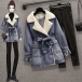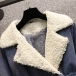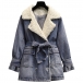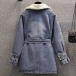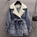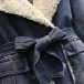 Fashion Warm Plush Lined Notch Lapel Long Sleeve Self-tie Old-washed Denim Jacket