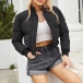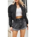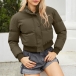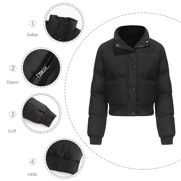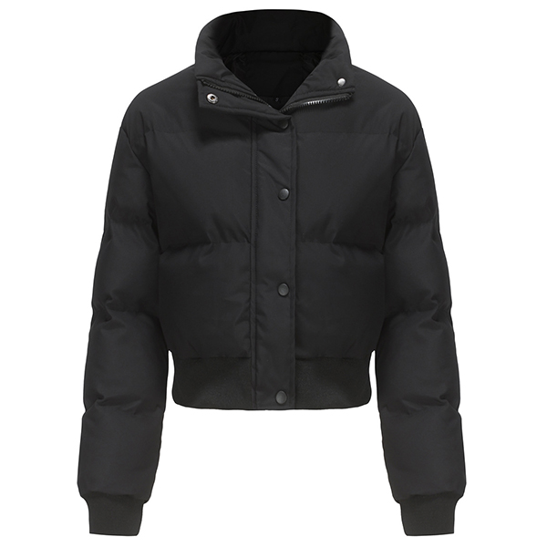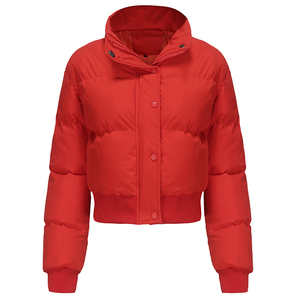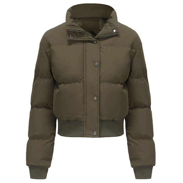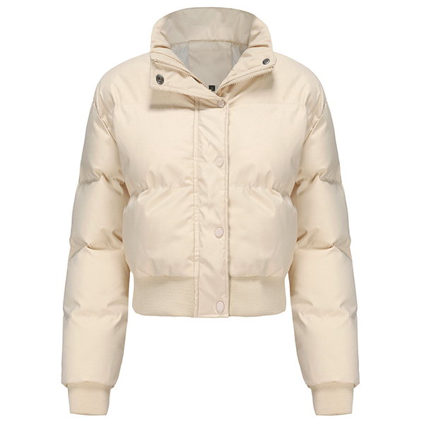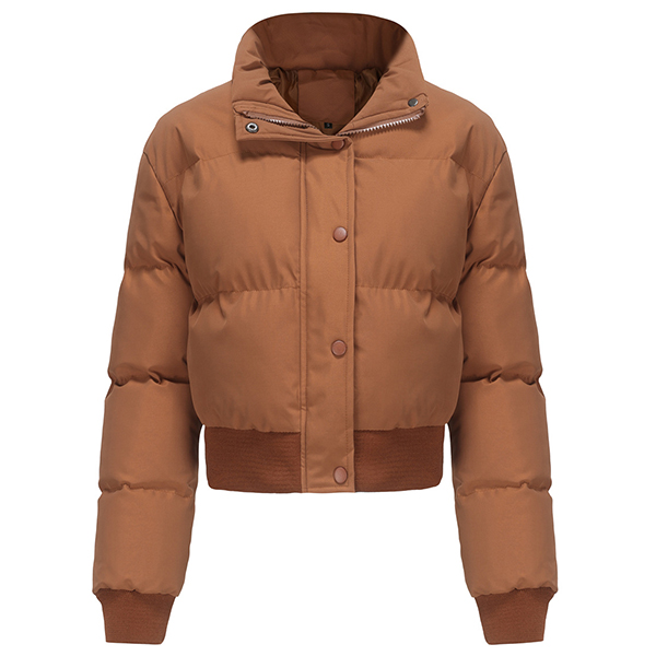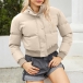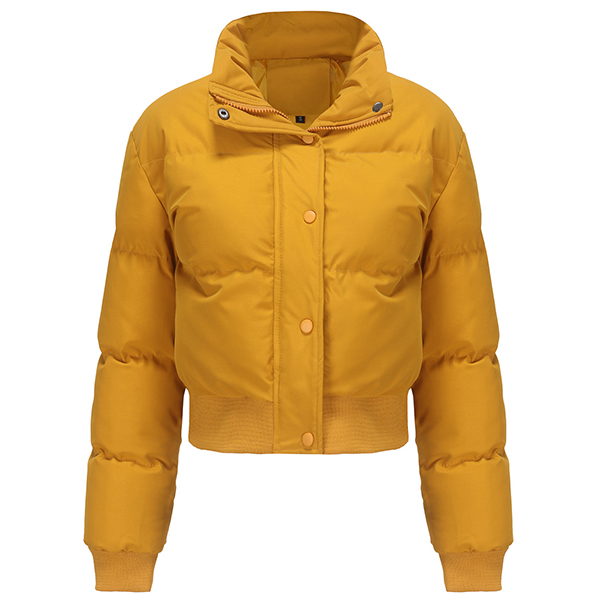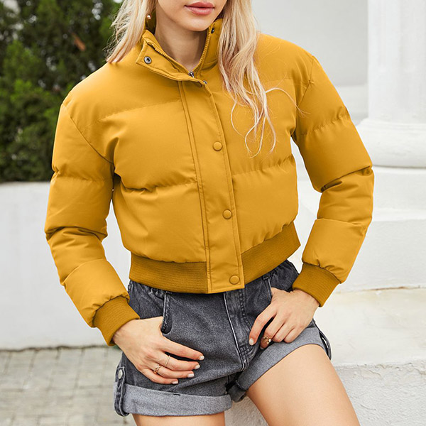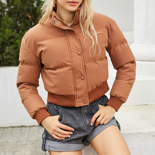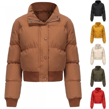 Fashion Warm Solid Color Stand Collar Long Sleeve Quilted Cotton Crop Jacket