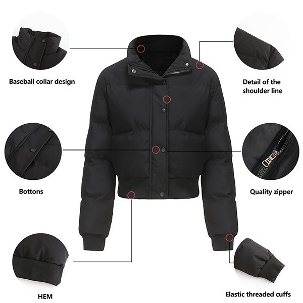 This jacket is the perfect combination of style and warmth. Made from high-quality quilted cotton, it offers a cozy and comfortable fit that is perfect for colder weather. The solid color design adds a touch of simplicity and versatility, making it easy to pair with other pieces in your wardrobe. The cropped length adds a trendy and modern twist, making it a standout piece. Whether you’re running errands, meeting friends for a casual outing, or simply want to stay warm and stylish, this crop jacket is a go-to option.