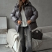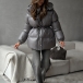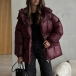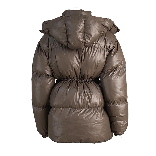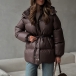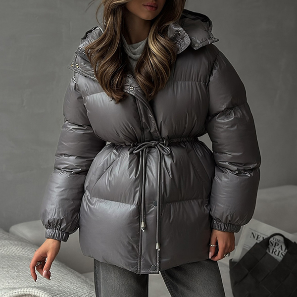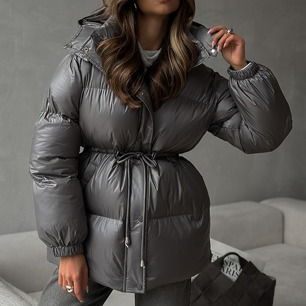 Fashion Warm Stand Collar Long Sleeve Front Button Drawstring Waist Hooded Quilted Coat