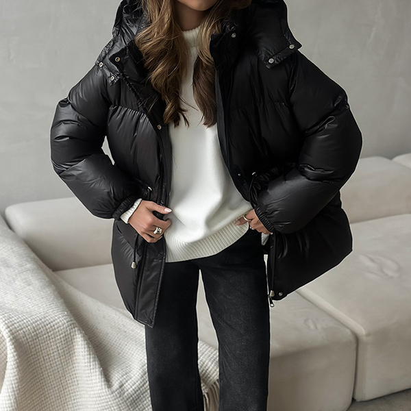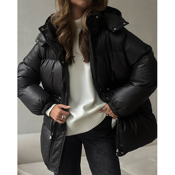 This versatile winter coat features structured stand collar with practical hood and quilted construction for superior warmth and style. The drawstring waist creates adjustable definition whilst the front button closure offers secure functionality with classic appeal.Perfect for winter weather, outdoor activities, or cold-weather commuting.