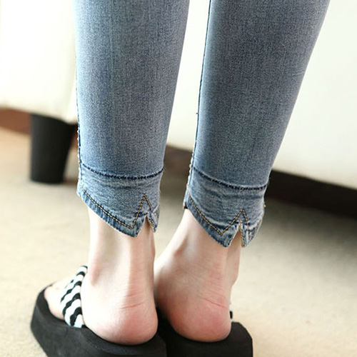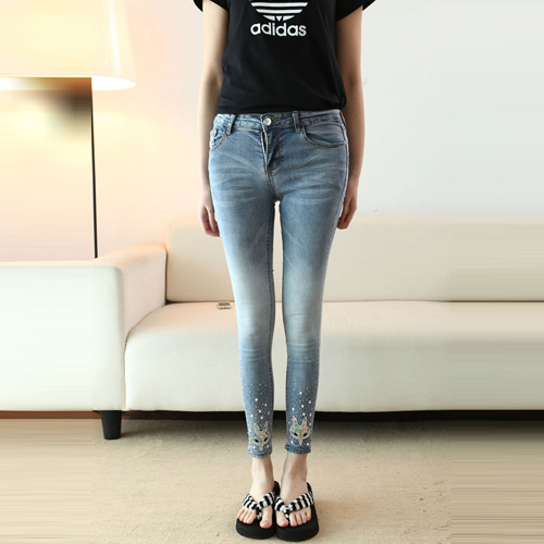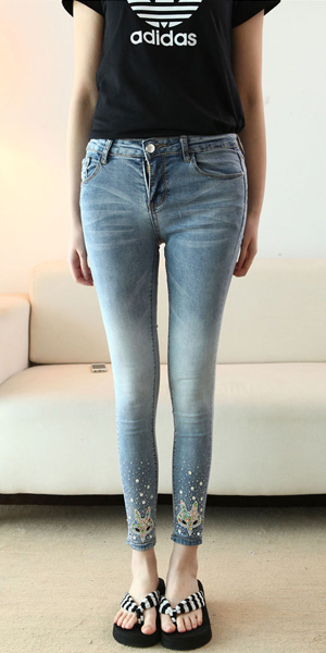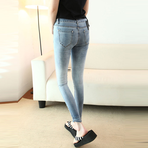 This pencil jeans can perfect show your slender legs. Washed-out style,