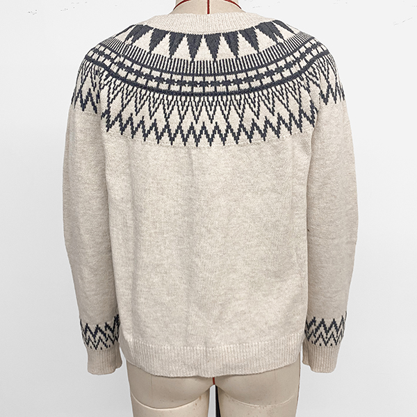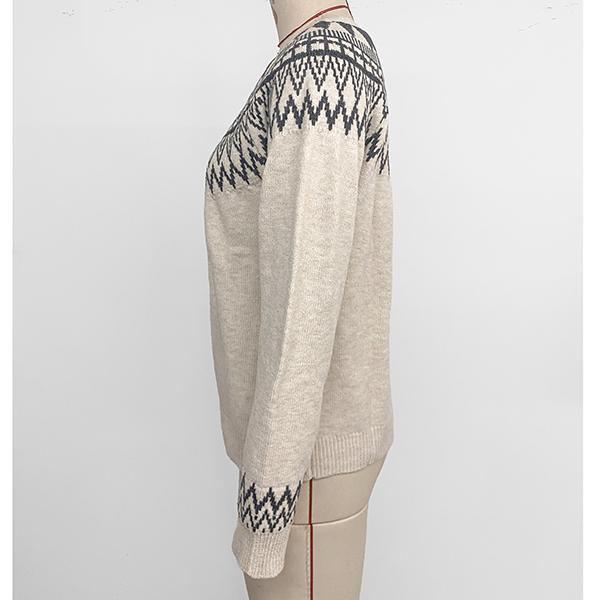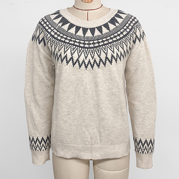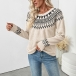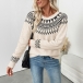 Fashion Wave Printed Crew Neck Long Sleeve Knitted Sweater