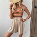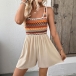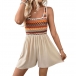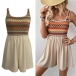 This romper features a colorful wavy printed bodice and a solid color shorts for a contrast effect. Pair with sandals for a fashion summer look.