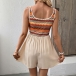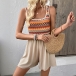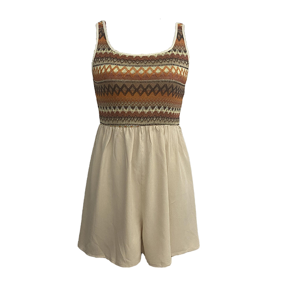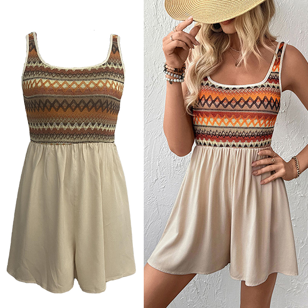Fashion Wave Printed Spliced Square Neck Sleeveless Romper