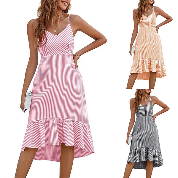 Fashion Wave Printed V-neck Ruffled Hemline Slip Dress