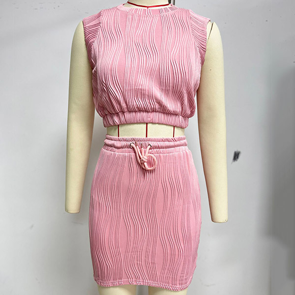 Fashion Wavy Printed Two-piece Set Consist of Crop Top and Skirt