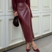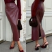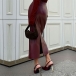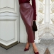 Fashion Wine Red Back Slit Midi Skirt