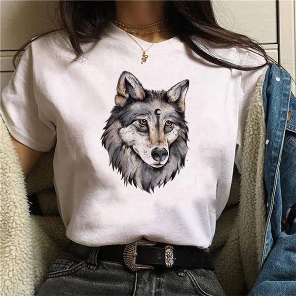 Fashion Wolf Printed Round Neck Short Sleeve Shirt