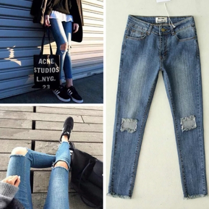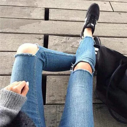 a slim silhouette, knee with holes design, which perfect shows off your seductive figure and fashion individuality.