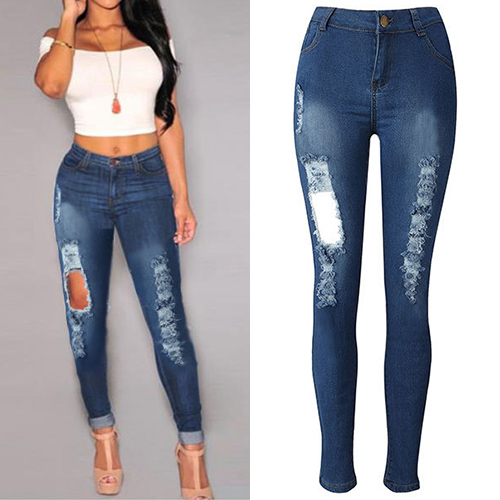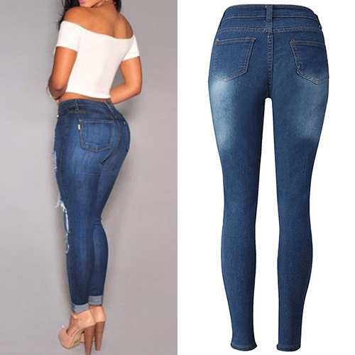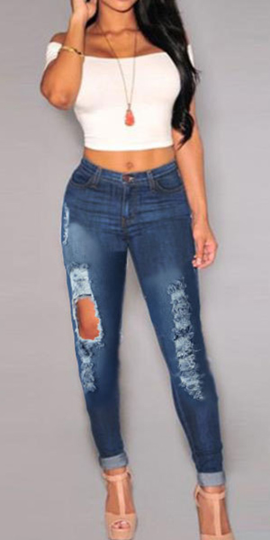 High waist style, equipped with zip fly, 2 side pockets and ripped design, it can bring you a stylish and