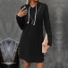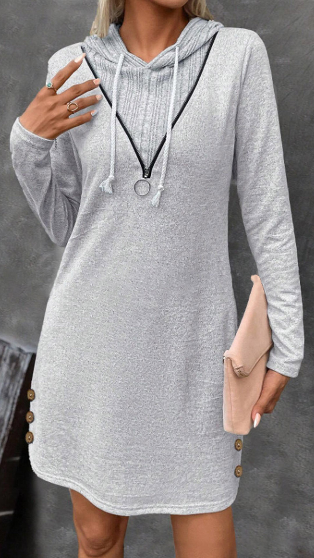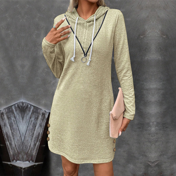 Fashion Zipper Buttoned Drawstring Hooded Long Sleeve Dress