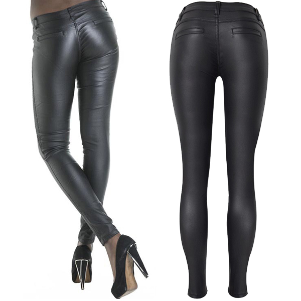 Fashion Zipper Low Waist Artificial Leather PU Fitted Pants