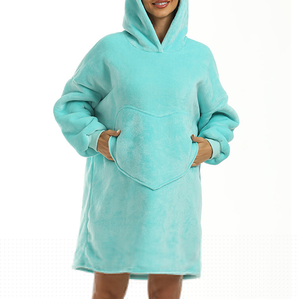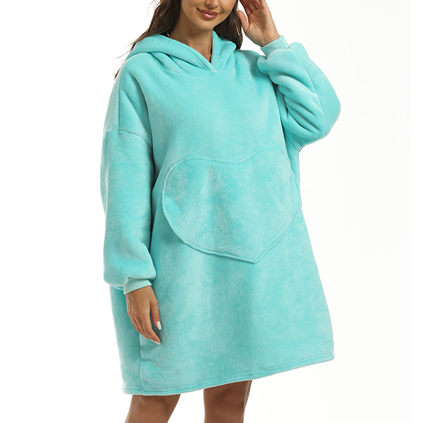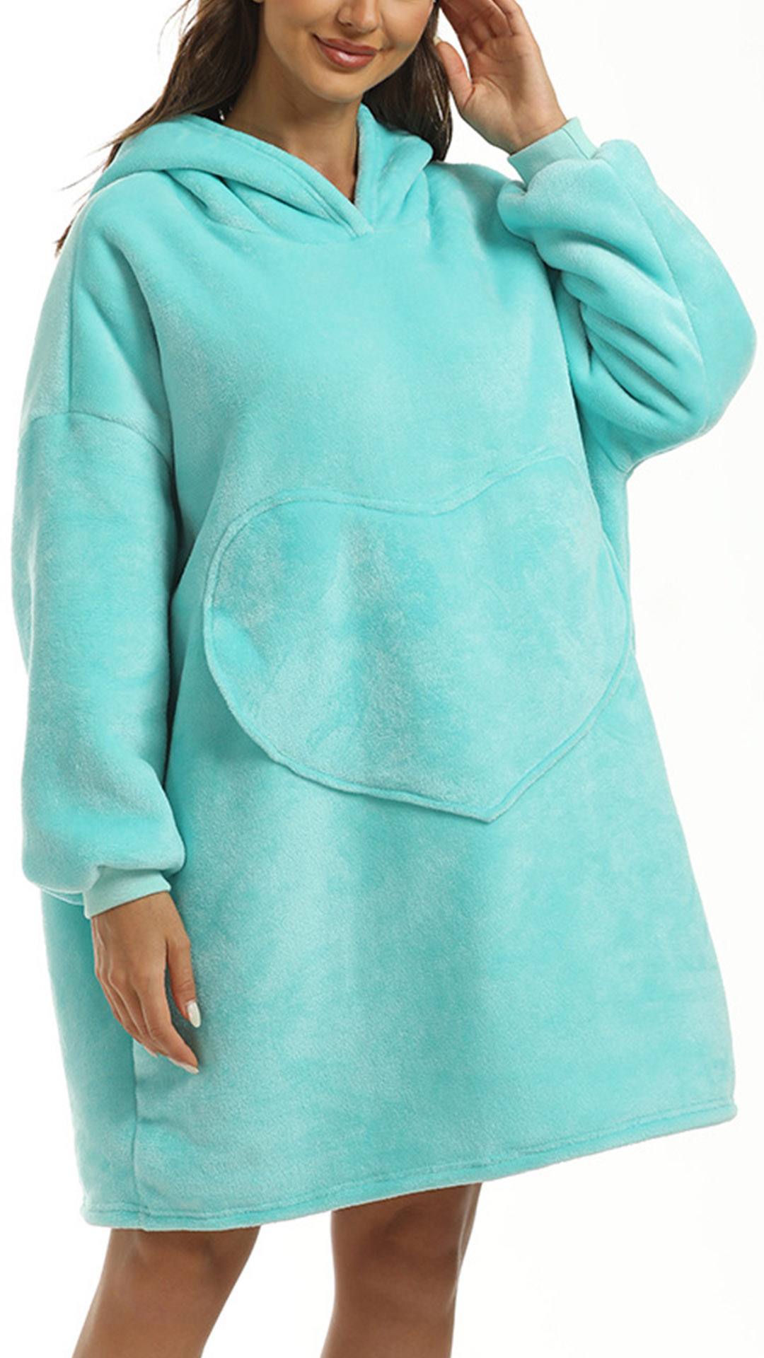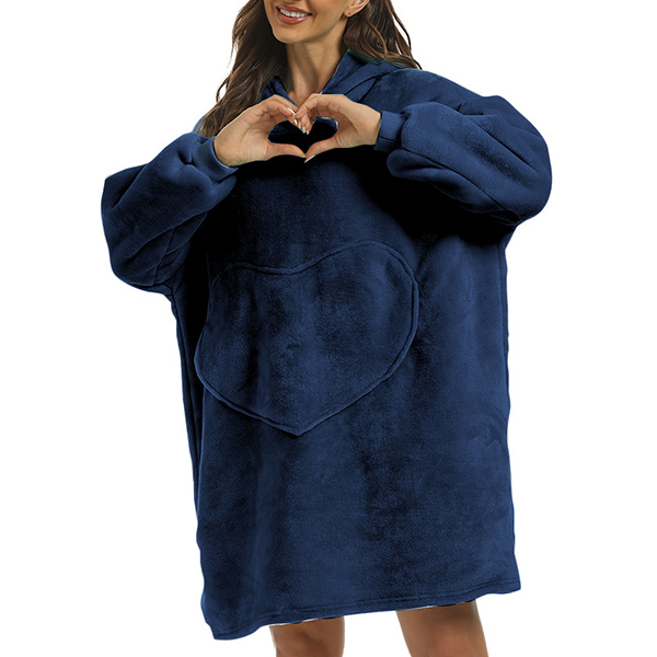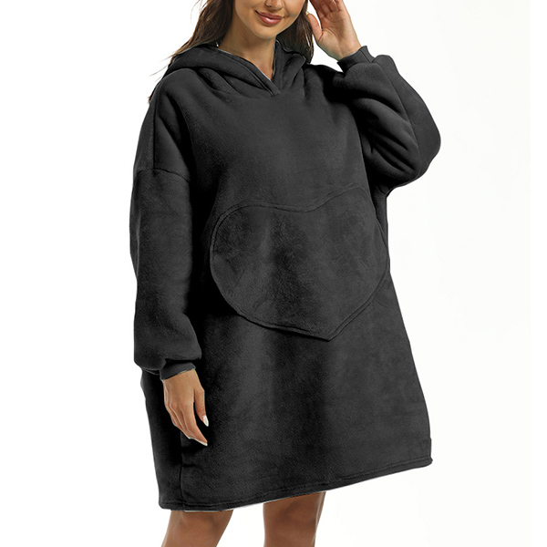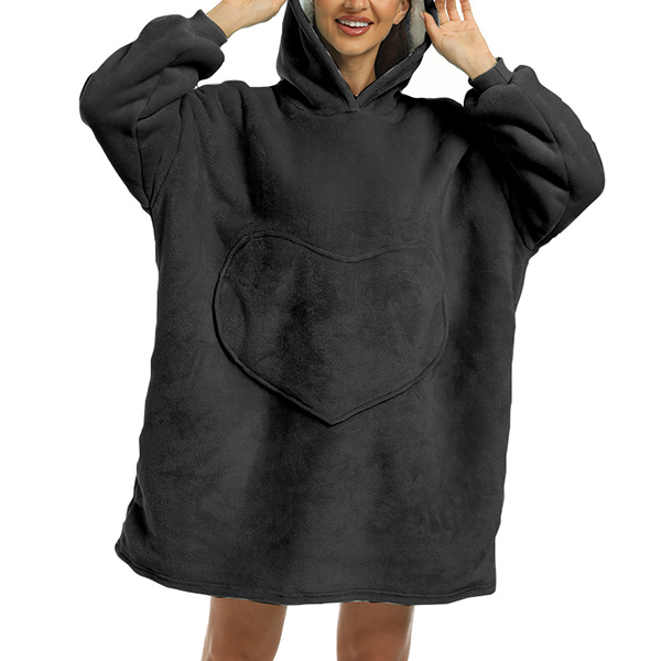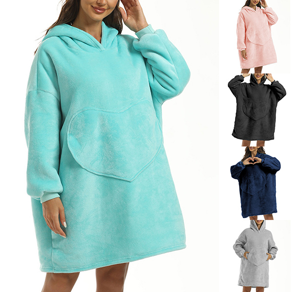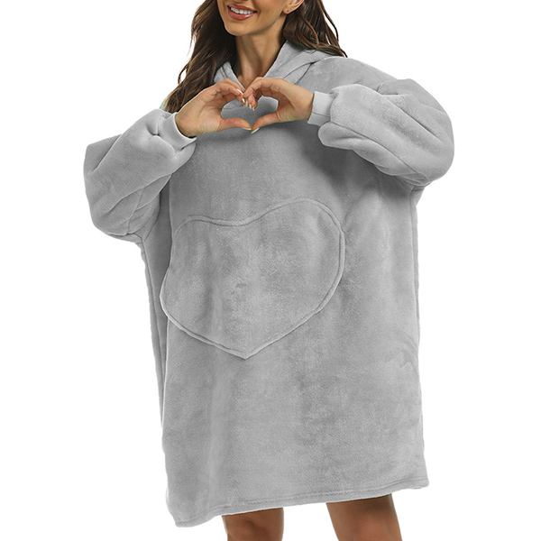 Fashionable Heart Patch Pocket Long Sleeve Hooded Cozy Home Loungewear - TV Blanket Snugglewear
