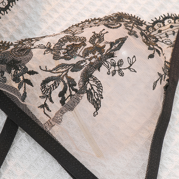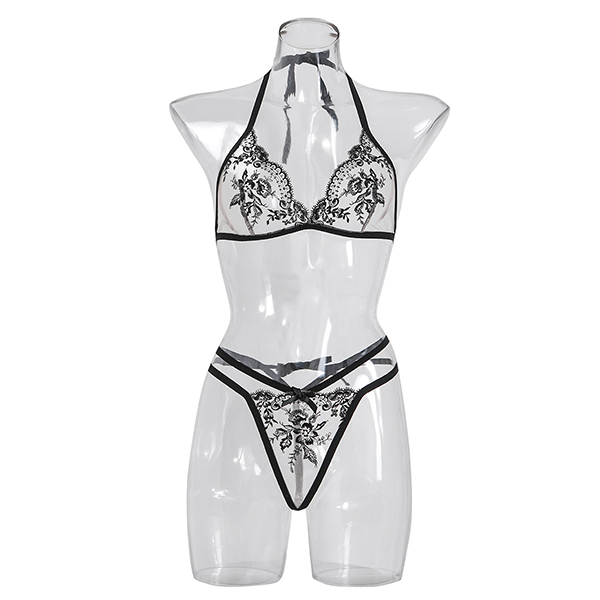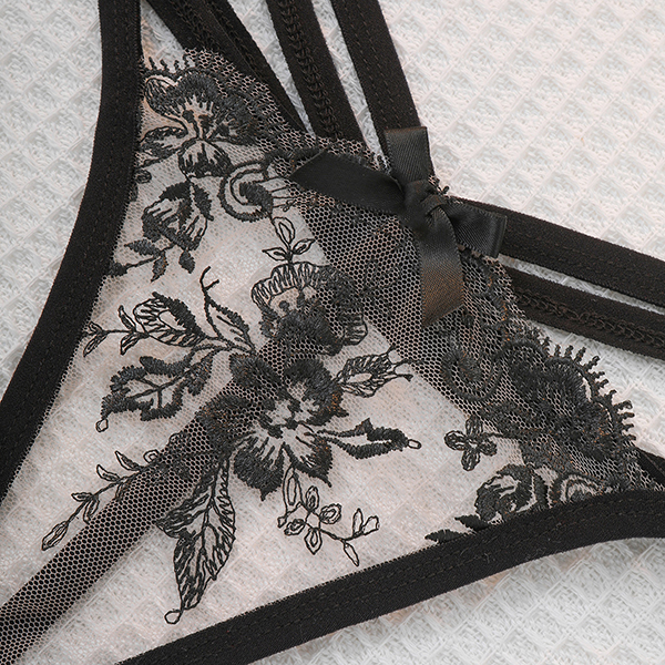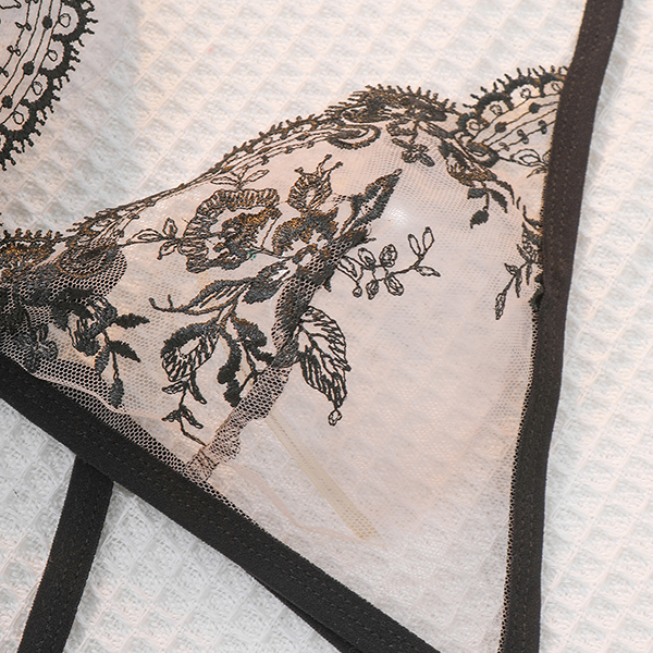 Fashionable Simple Strap Transparent Flower Embroidered Sexy Lingerie