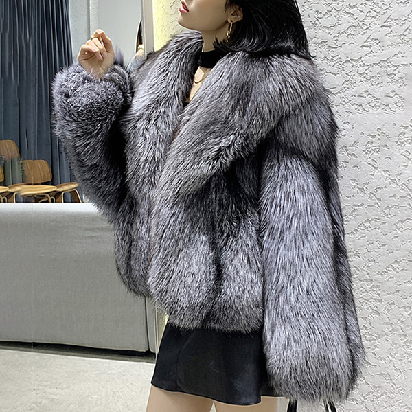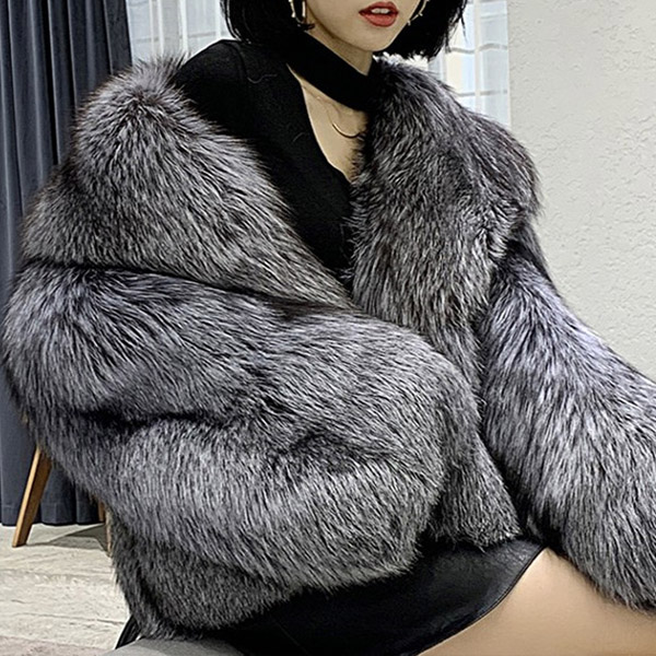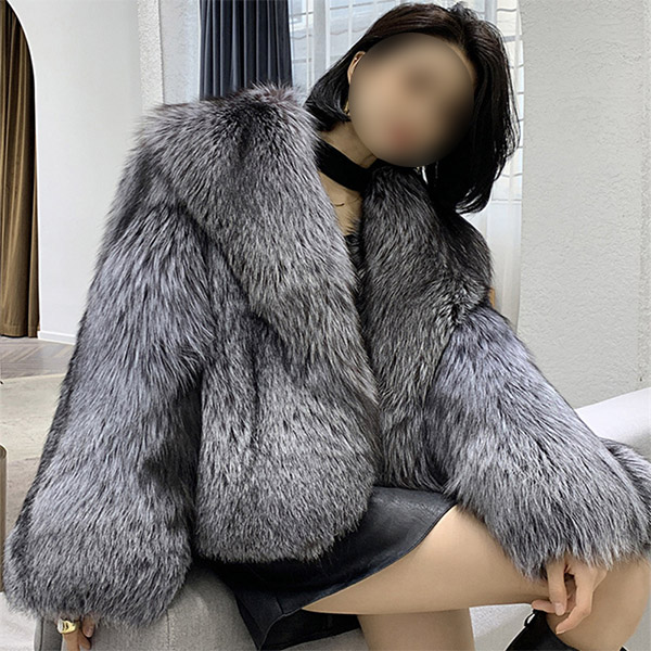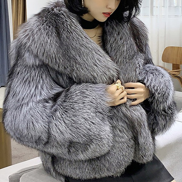 Manteau court et élégant en fausse fourrure de renard pour femme