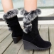 Bottes compensées mi-mollet avec doublure en fausse fourrure
