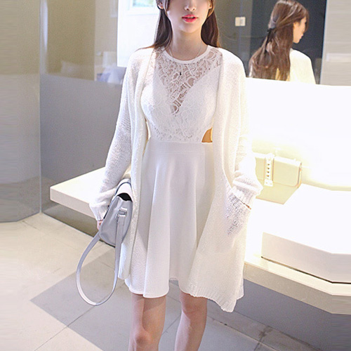 Simple in shape yet chock-full of delicate details,this dress features lace spliced design,