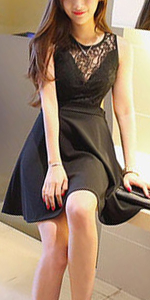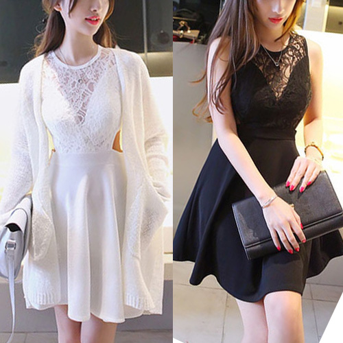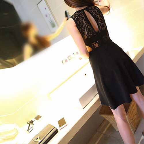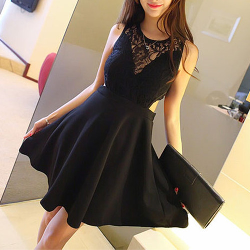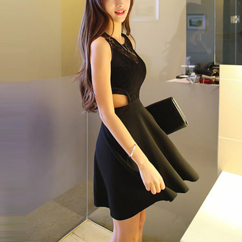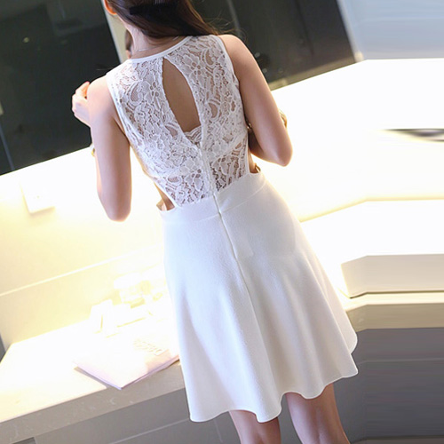 Feminine Style Lace Spliced Hollow Out High Waist Sleeveless Dress