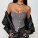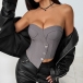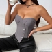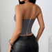 Fishbone Detail Bra with Cotton Underwire Waist-Hugging Tube Top