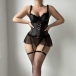 Fashion Ruffle Lace-up Two-piece Lingerie Set with Mesh-net Stockings