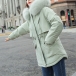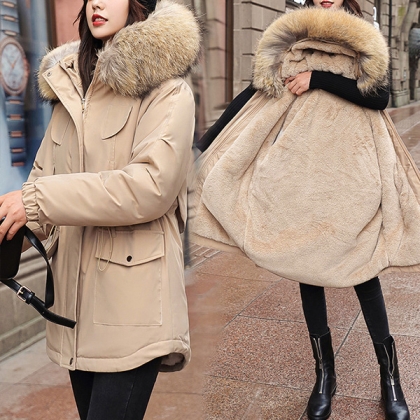 Fleece Padded Jacket with Large Faux Fur Collar Short Waist Padding
