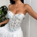 Floral Embroidered Tube Top with Lace Detail and Tie Back Design