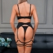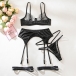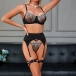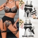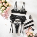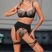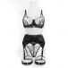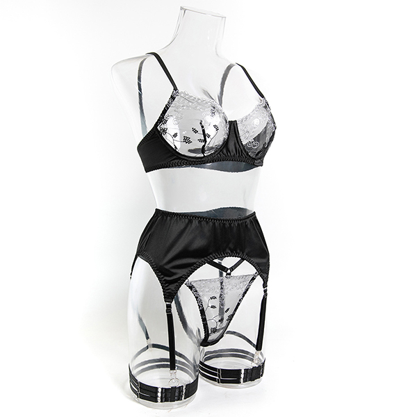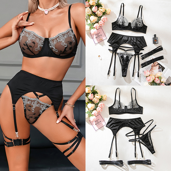 Four-Piece Lingerie Set with 3D Floral Embroidery and Satin Strap Details