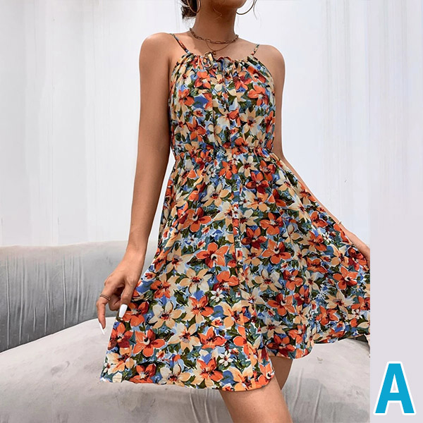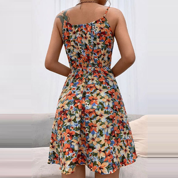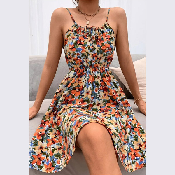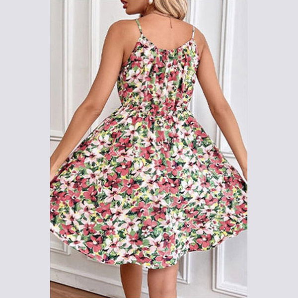 Fresh Floral Printed Elastic Waist Slip Dress