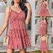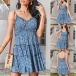 For your sun-soaked summer days,this fresh style dress can easily strike your mind. Its vibrant floral print details make this piece look so eye-catching. Sling style,with backless,v-neck and ruffle hem design,this piece also can make you look flirty and alluring. So why not slip into this piece to have a wonderful day?