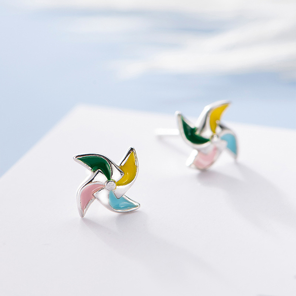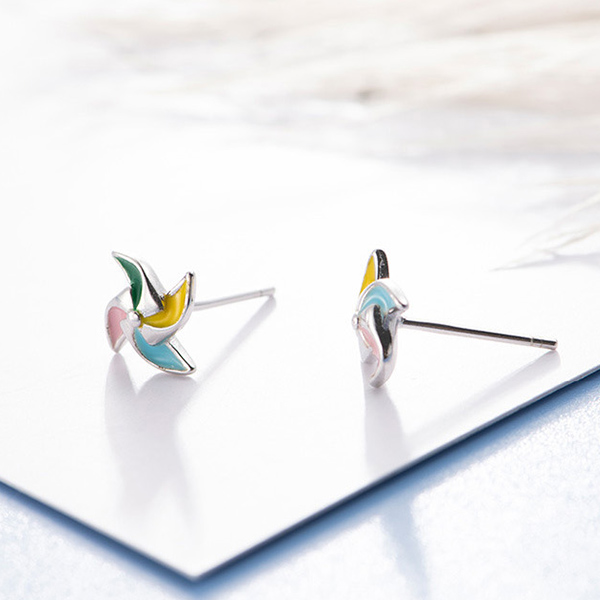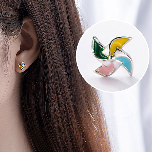 Add a dash of fresh and sweet vibes to your overall look with this help of this pair of stud earrings. The windmill shape and contrast color element design make it look so chic,stylish and distinctive. Just enrich your dress up with these pieces.
