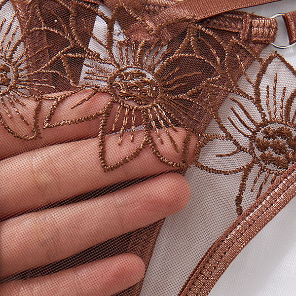 Fresh Style Floral Embroidered Semi-through Two-piece Lingerie Set