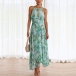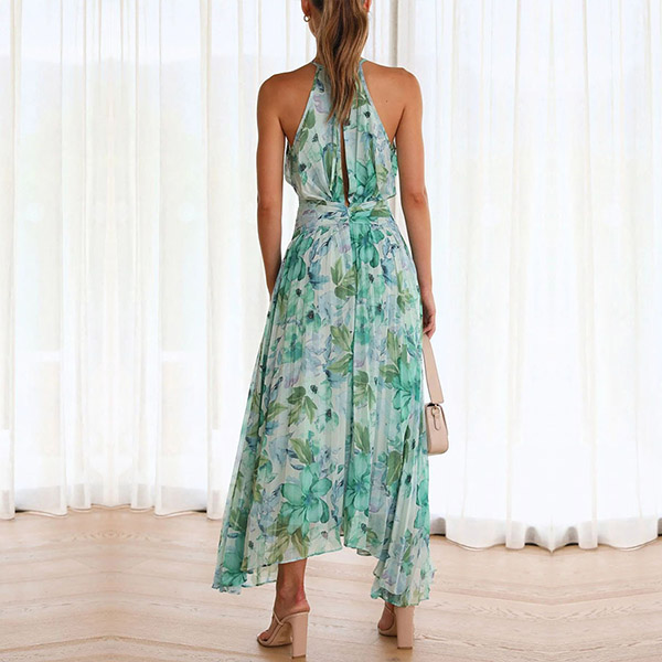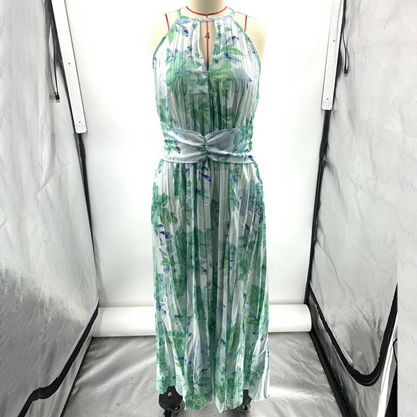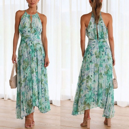 Fresh Style Floral Printed Cinch Waist Pleated Dress