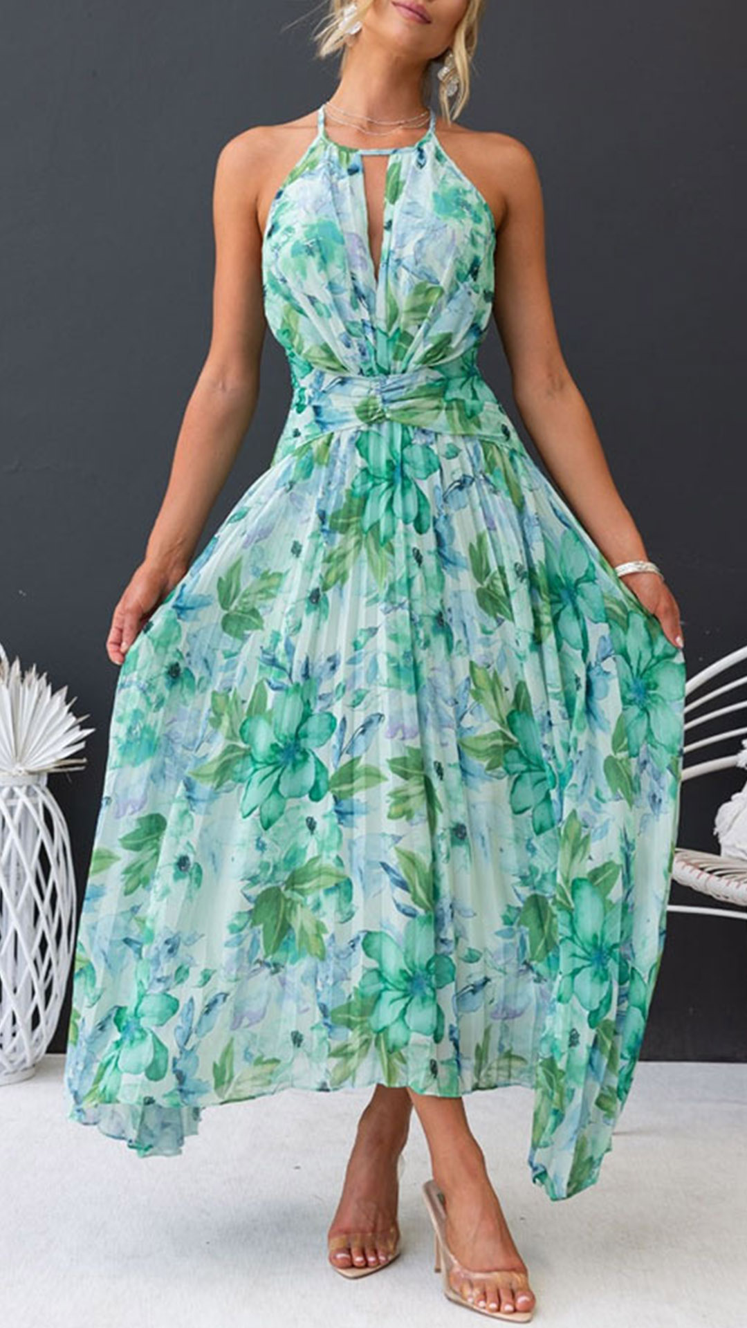 This dress embodies a fresh and feminine style, featuring a floral print, cinched waist, and pleated details. Wanna have one?