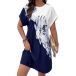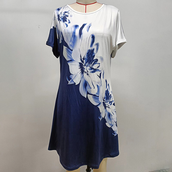 Fresh Style Floral Printed Contrast Color Round Neck Short Sleeve Mini Dress