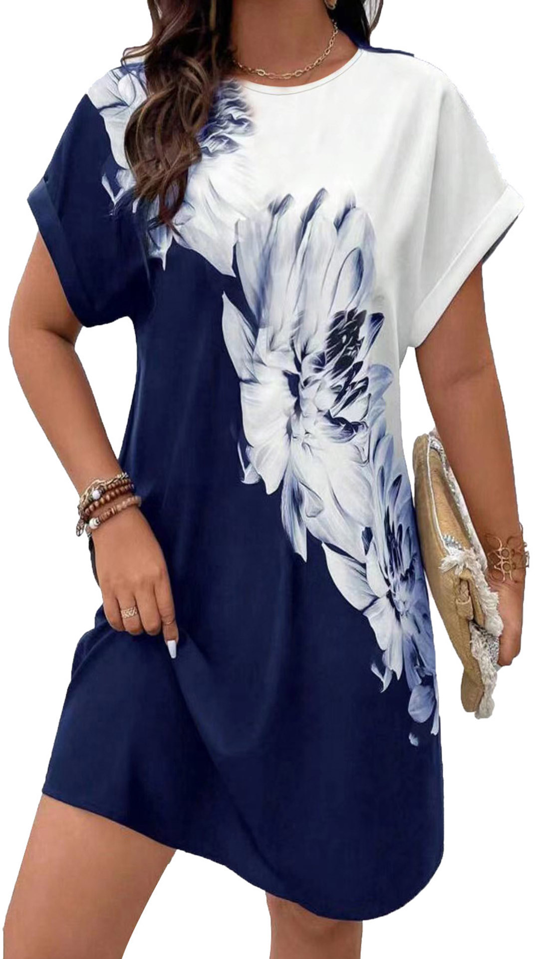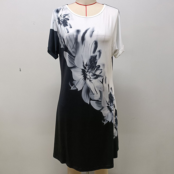 This mini dress features a delightful floral print with strategic color blocking, creating a garment that exudes a refreshing and youthful aesthetic. Black and blue, which one do you like?