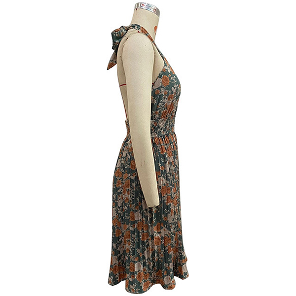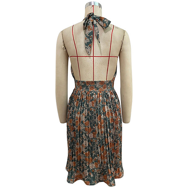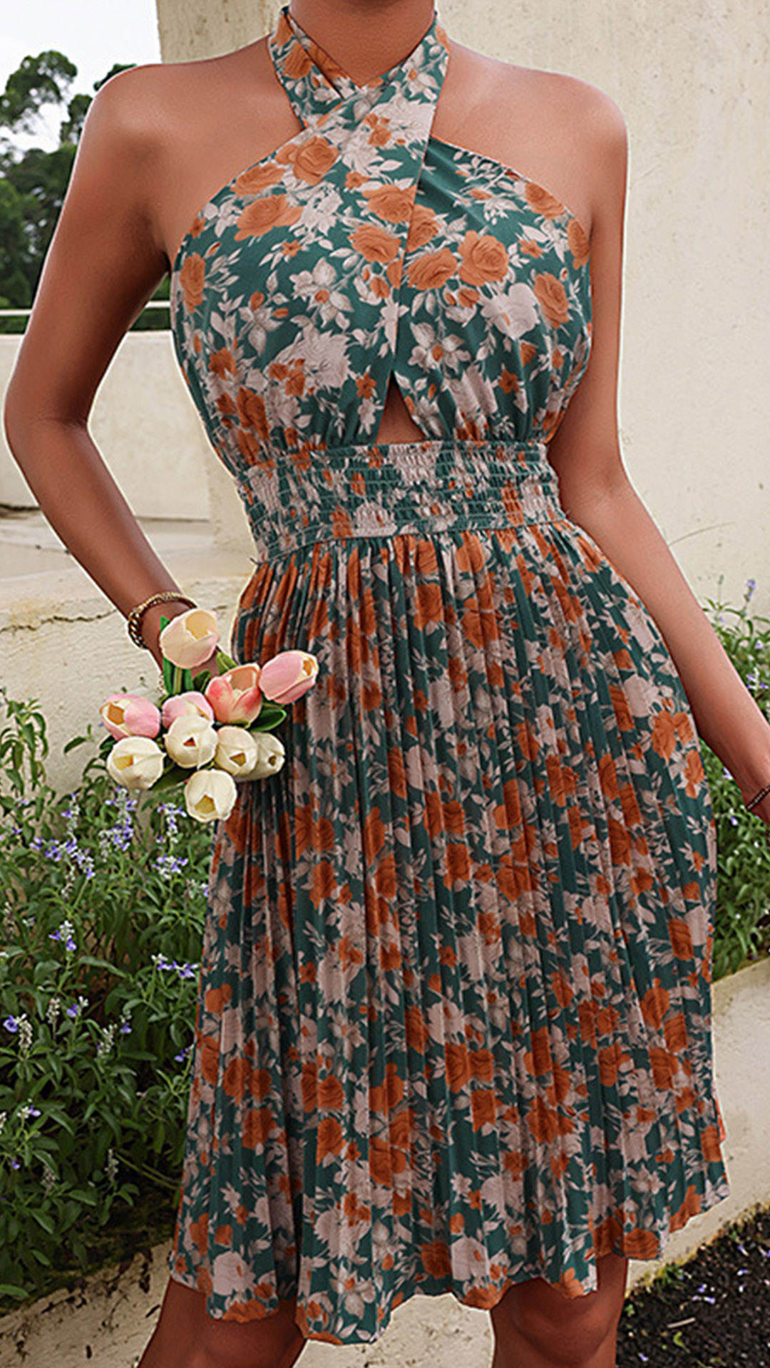 Wow, a sexy dress for a sunny day or a special occasion. This dress features a fresh and unique design, with a floral print that adds a touch of femininity and charm to the overall look. The halterneck and backless detailing provide a flattering and elegant silhouette that will make you stand out from the crowd. I like the smocked waist and pleated skirt design, and you?