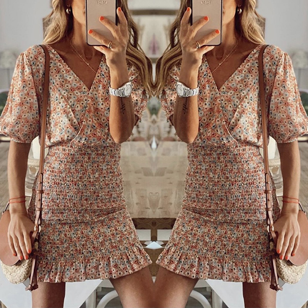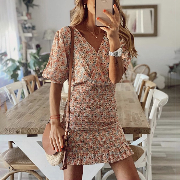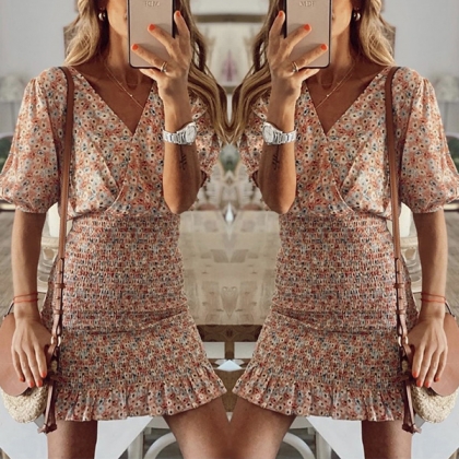 Fresh Style Floral Printed Smocked Mini Dress