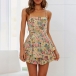 Fresh Style Floral Printed Square Neck Backless Cami Romper