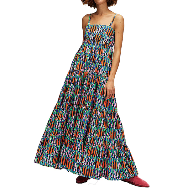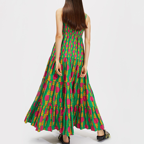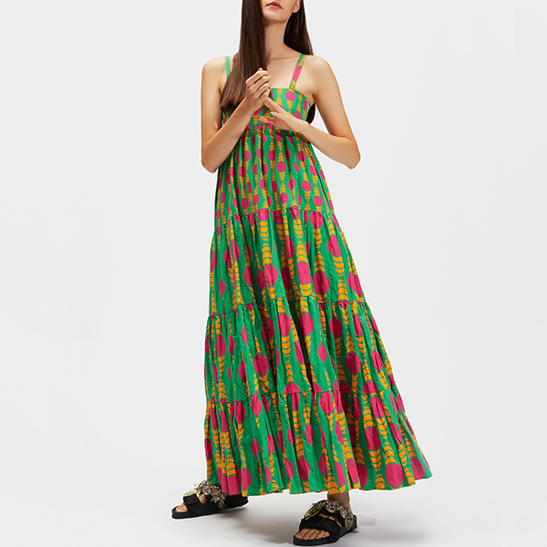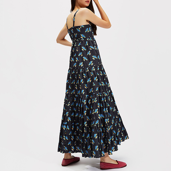 Fresh Style Floral Printed Square Neck Maxi Cami Dress
