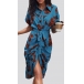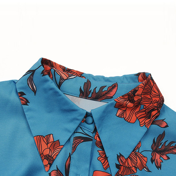 Fresh Style Floral Printed Stand Collar Short Sleeve Button Slit Self-tie Shirt Dress