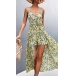 Fresh Style Floral Printed V-neck High-low Hemline Cami Romper