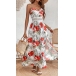 Fresh Style Floral Printed V-neck Lace Spliced Waist Slit Maxi Dress