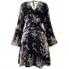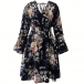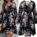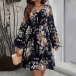 Fresh Style Floral Printed V-neck Long Sleeve High-rise Mini Dress